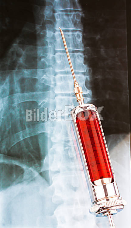 Beschreibung Injektionsnadel und Spritze vor einem Röntgenbild