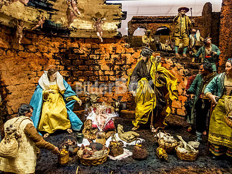 Beschreibung Krippe mit Jesus in einer Krippe auf Palma in Mallorca, Spanien