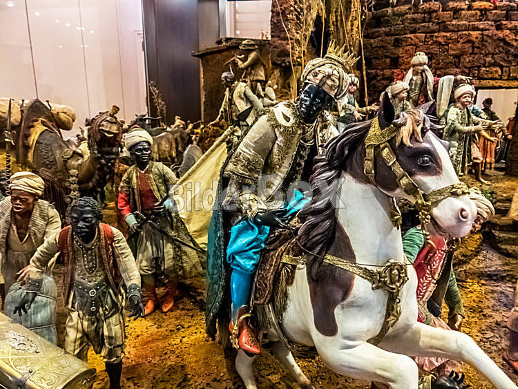 Beschreibung Krippe mit Jesus in einer Krippe auf Palma in Mallorca, Spanien