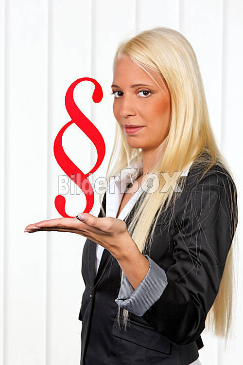 Beschreibung Junge blonde Studentin mit Paragraphenzeichen