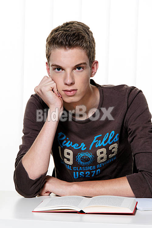 Beschreibung Ein junger Student beim lernen mit Büchern