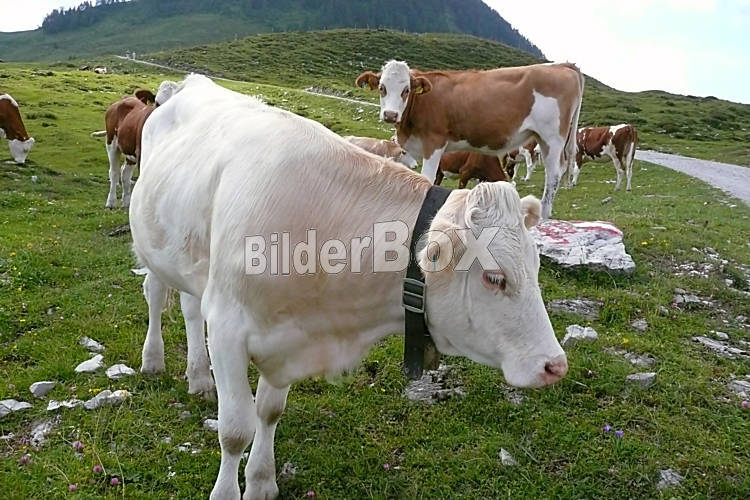 Beschreibung Kühe auf der Almweide [ (c) www.BilderBox.com, Erwin Wodicka, Siedlerzeile 3, A-4062 Thening, Tel. + 43 676 5103678.Verwendung nur gegen HONORAR, BELEG, URHEBERVERMERK nach AGBs auf bilderbox.com]