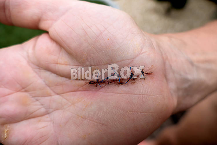 Beschreibung Naht an einer Hand nach einem Karpaltunnelsyndrom