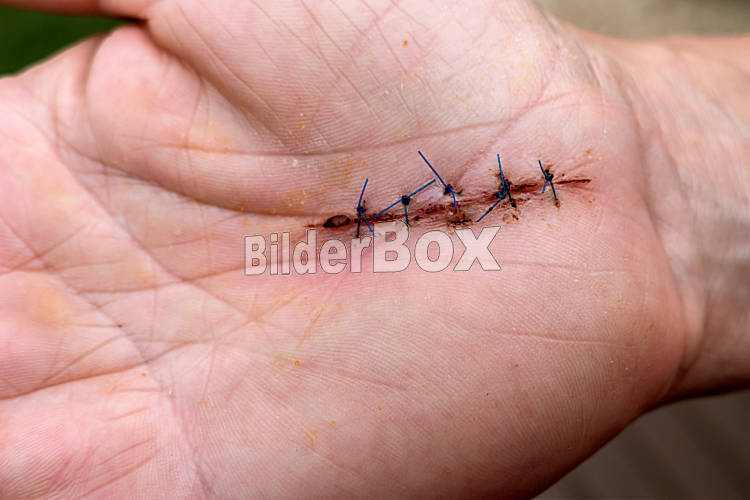 Beschreibung Naht an einer Hand nach einem Karpaltunnelsyndrom