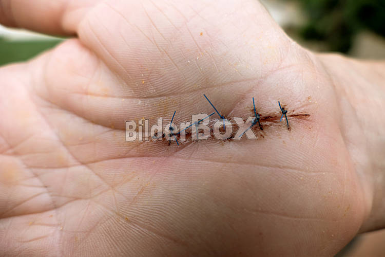 Beschreibung Naht an einer Hand nach einem Karpaltunnelsyndrom