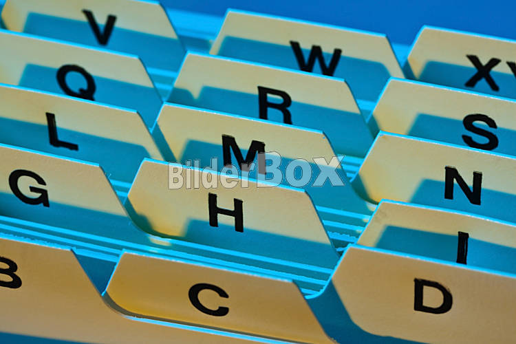 Beschreibung Alphabetisches Register zur Sortierung von Karteikarten. Kundenadressen und Patientendaten.