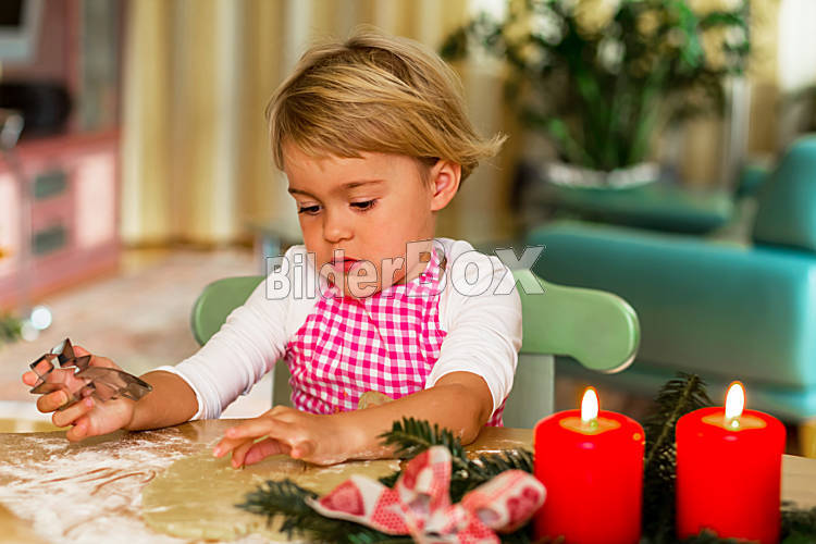 Beschreibung Kind backen für Weihnachten Kekse. Plätzchen für die Adventzeit