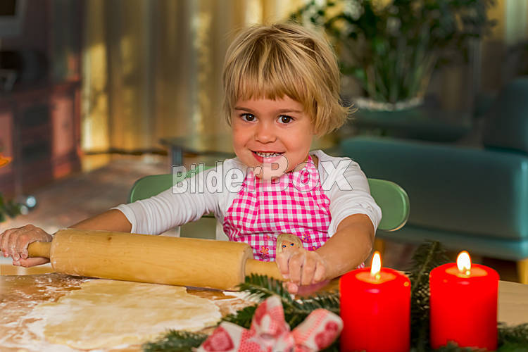 Beschreibung Kind backen für Weihnachten Kekse. Plätzchen für die Adventzeit