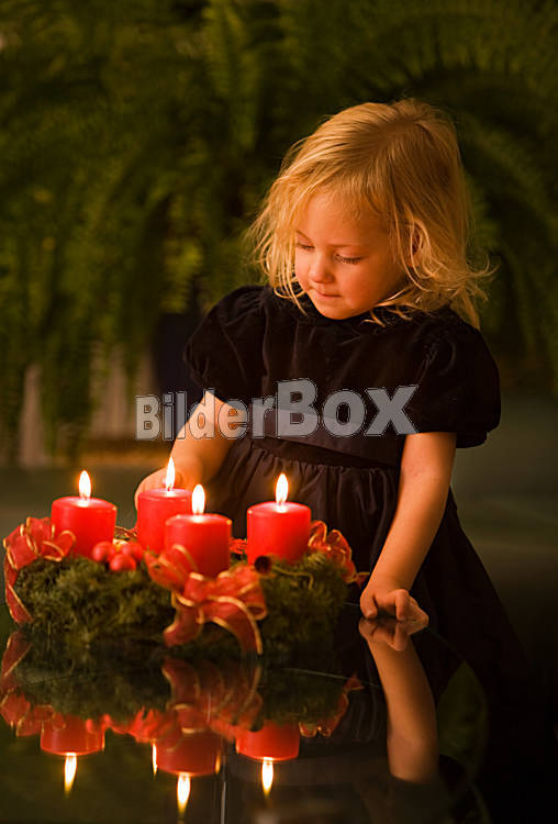 Beschreibung Kind mit Adventkranz zu Weihnachten