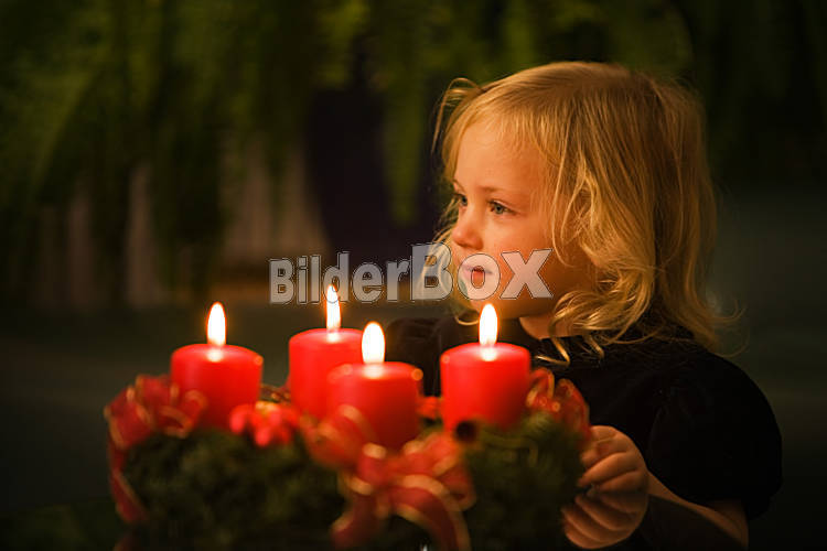 Beschreibung Kind mit Adventkranz zu Weihnachten
