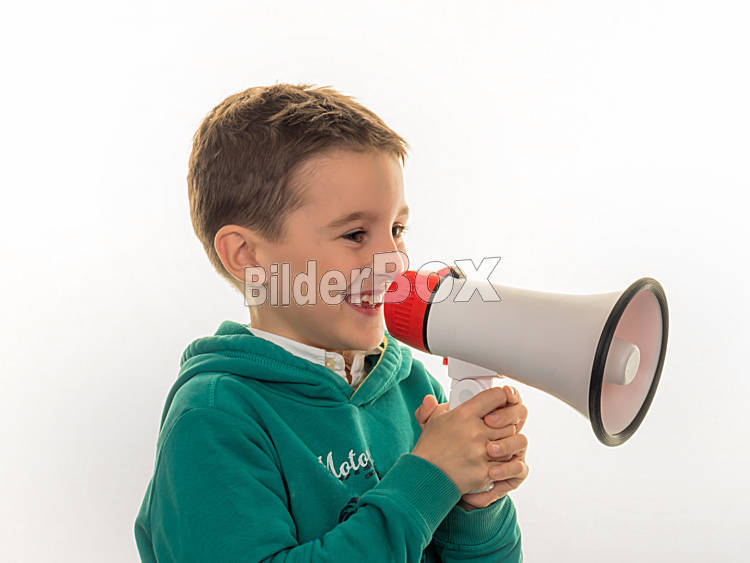 Beschreibung Ein Kind mit einem Megaphon in der Hand