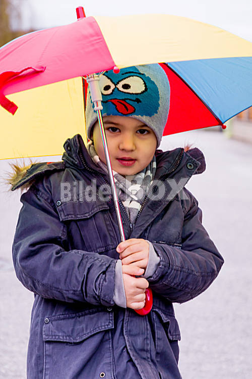 Beschreibung Kind mit Regenschirm, Symbol für Kindheit, Solidarität, Hilfe, Hilfspaket, Rettungsschirm,