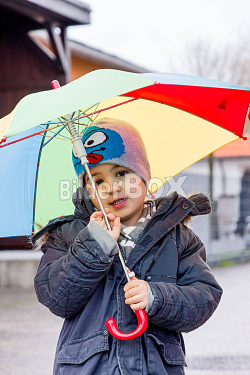 Beschreibung Kind mit Regenschirm, Symbol für Kindheit, Solidarität, Hilfe, Hilfspaket, Rettungsschirm,