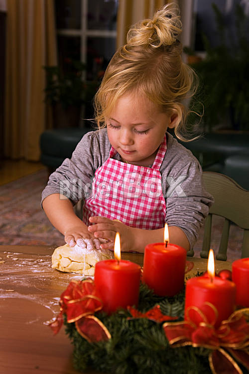 Kind zu Weihnachten im Advent beim Plätzchen backen