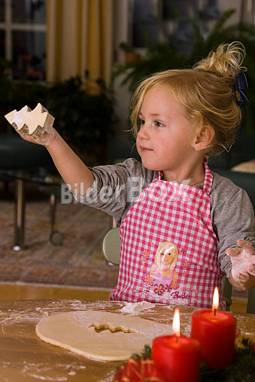 Kind zu Weihnachten im Advent beim Plätzchen backen