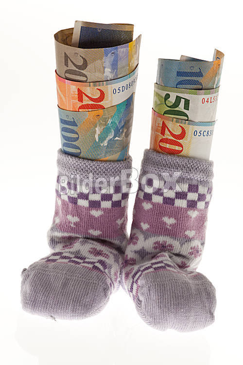 Kinder Socken mit Schweizer Franken Geldscheinen