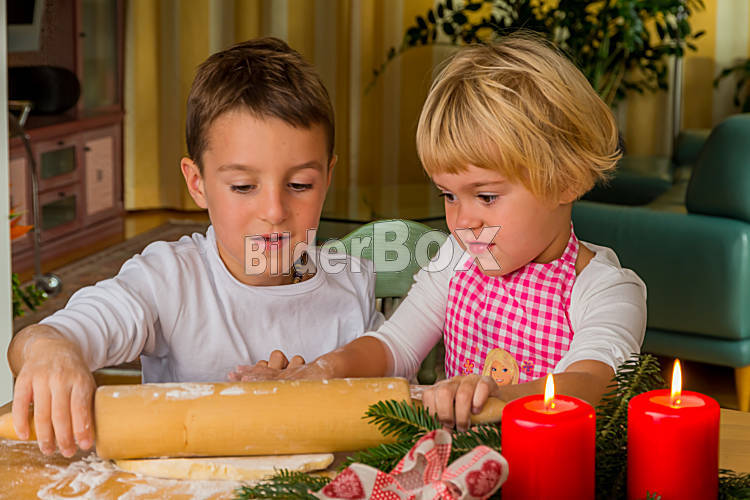 Kinder backen Kekse zu Weihnachten