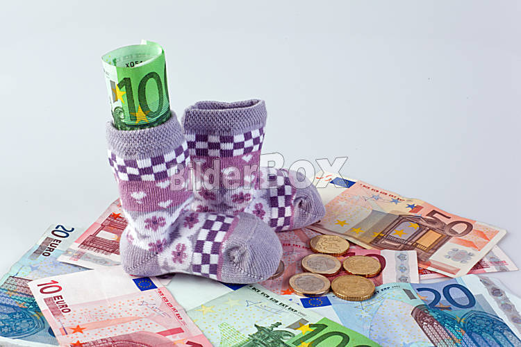 Beschreibung Kindersocken und Euro Geldscheine. beihilfen und Förderungen.