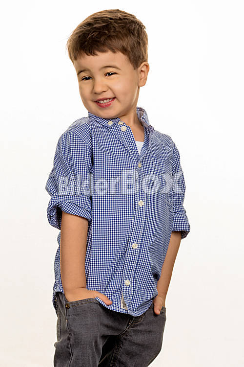 Beschreibung Kleiner Junge in Pose, Symbol für Kindheit, Verschmitztheit, Cleverness