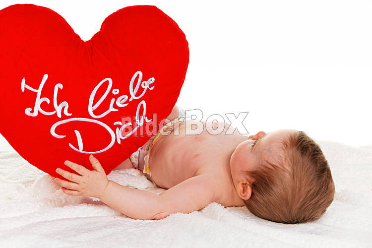 Kleines Kind Baby mit Polster Ich liebe Dich