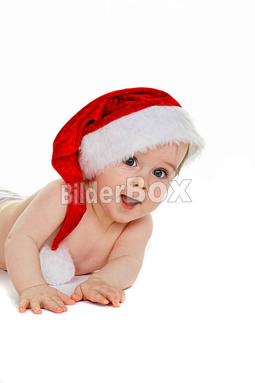 Kleines Kind baby mit Weihnachtsmann Mütze