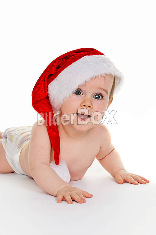 Kleines Kind baby mit Weihnachtsmann Mütze