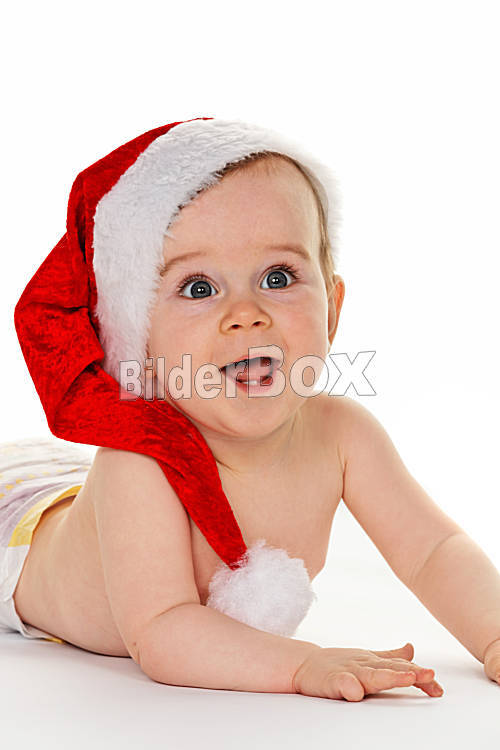 Kleines Kind baby mit Weihnachtsmann Mütze