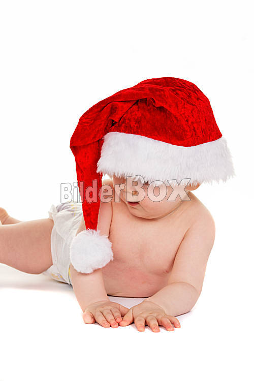 Kleines Kind baby mit Weihnachtsmann Mütze
