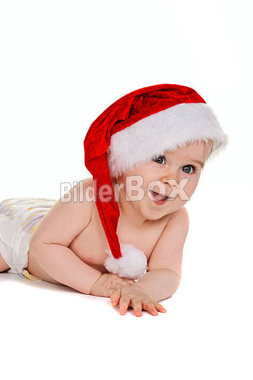Kleines Kind baby mit Weihnachtsmann Mütze