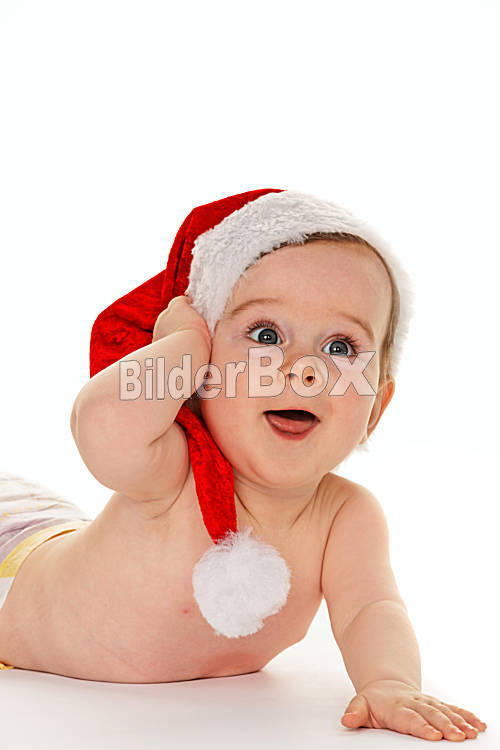 Kleines Kind baby mit Weihnachtsmann Mütze
