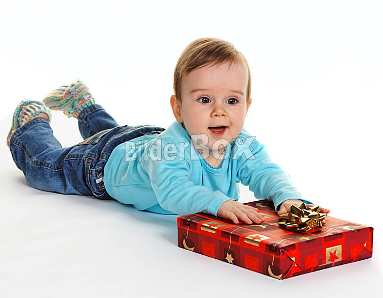 Kleines Kind mit einem Geburtstags Geschenk Paket
