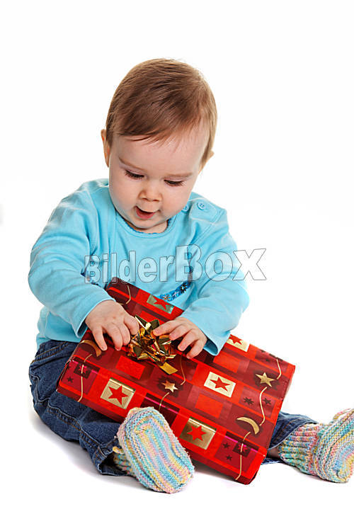 Kleines Kind mit einem Geburtstags Geschenk Paket