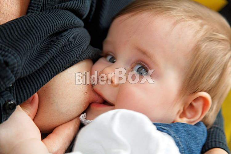 Beschreibung Kleines trinkendes Kind - Baby trinkt an Mutter Brust