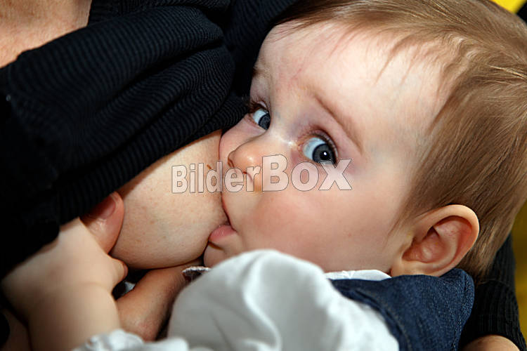 Beschreibung Kleines trinkendes Kind - Baby trinkt an Mutter Brust