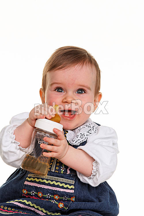 Beschreibung Kleines trinkendes Kind - Baby trinkt mit Flasche