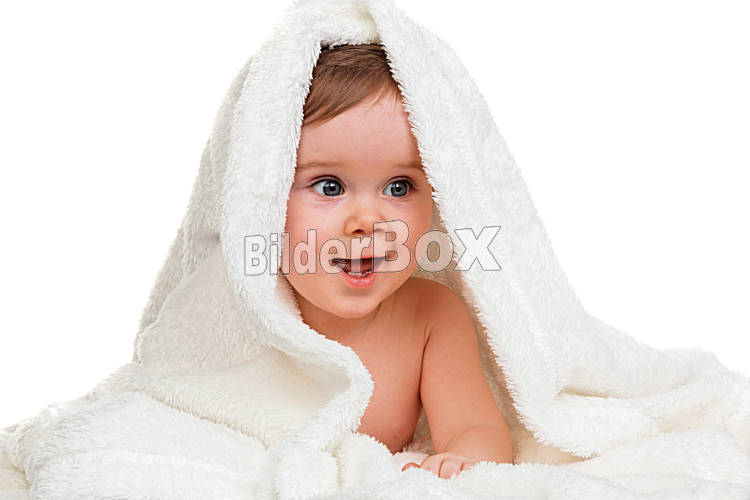 Beschreibung Kleines staunendes Kind Baby in Decke gewickelt