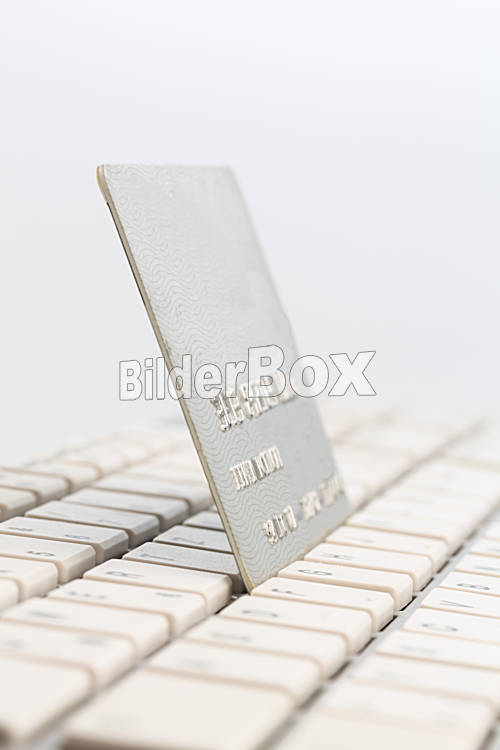 Beschreibung Eine Kreditkarte und die Tastatue von einem Computer. Symbolfoto für Online Shopping und Sicherheit beim Bezhalen im Internet
