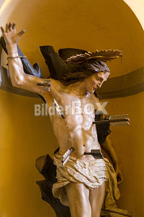 Beschreibung Jesus Christus am Kreuz. Symbolfoto für Karfreitag, Ostern und Auferstehung. Linz, Oberösterreich, Pöstlingberg