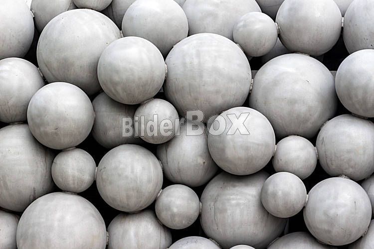 Beschreibung Kugeln als Kunstwerk vor dem neuen Musiktheater in Linz, Österreich