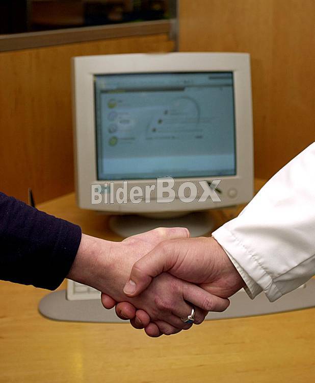 Beschreibung Haendedruck Arzt und Patient - 04.03.2003 [ (c) www.BilderBox.com, Erwin Wodicka; A-4062 Breitbrunn, Tel: +43 676 5103 678; Verwendung nur gegen HONORAR, BELEG, URHEBERVERMERK und den AGBs auf...
