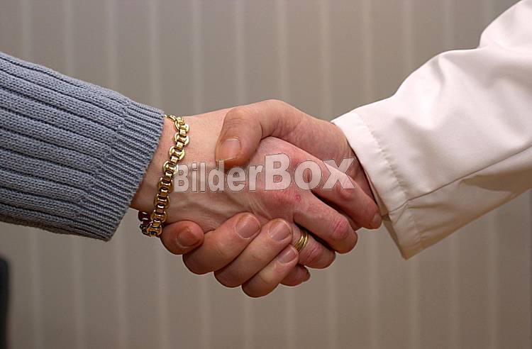Beschreibung Haendedruck Arzt und Patient - 04.03.2003 [ (c) www.BilderBox.com, Erwin Wodicka; A-4062 Breitbrunn, Tel: +43 676 5103 678; Verwendung nur gegen HONORAR, BELEG, URHEBERVERMERK und den AGBs auf...