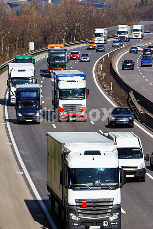 Beschreibung Lastwagen auf der Autobahn. Transport auf der Straße für Güter.