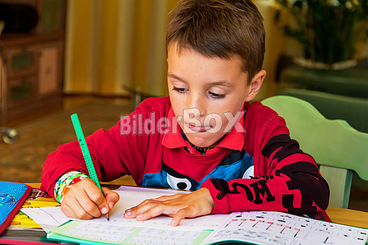 Beschreibung Ein Schüler macht seine Hausaufgaben. Schulaufgaben werden gemacht.