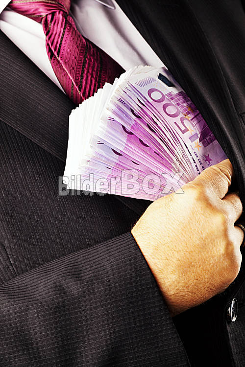 Beschreibung Ein Manager mit vielen 500 Eurogeld Scheinen in der Hand.