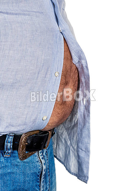 Beschreibung Mann mit Übergewicht. Symbolfoto für Bierbauch, erfolglose Diäten und falsche Ernährung.