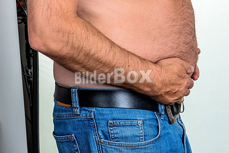 Beschreibung Mann mit Übergewicht. Symbolfoto für Bierbauch, erfolglose Diäten und falsche Ernährung