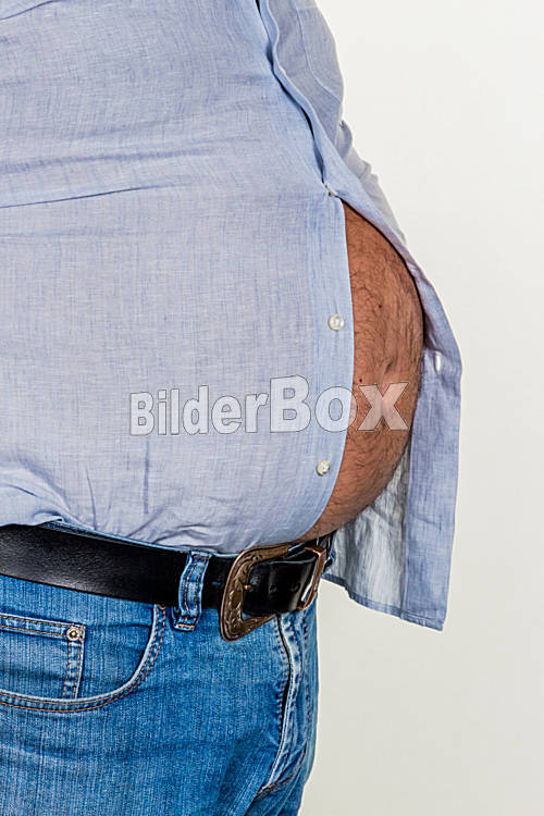Beschreibung Mann mit Übergewicht. Symbolfoto für Bierbauch, erfolglose Diäten und falsche Ernährung.