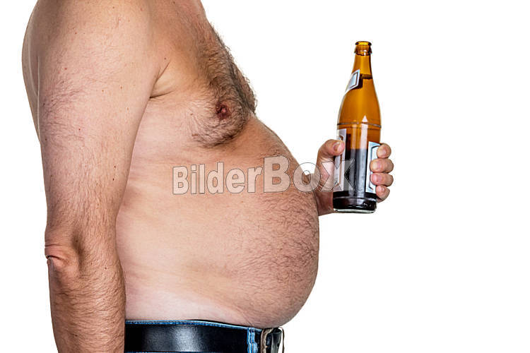Beschreibung Mann mit Übergewicht. Symbolfoto für Bierbauch, erfolglose Diäten und falsche Ernährung