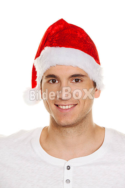 Mann mit Mütze eines Weihnachtsmannes