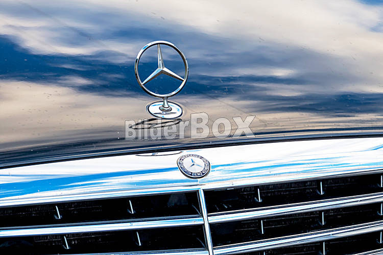 Beschreibung Mercedes Stern Nahaufnahme, Symbol für Autos, Tradition, Statussymbol